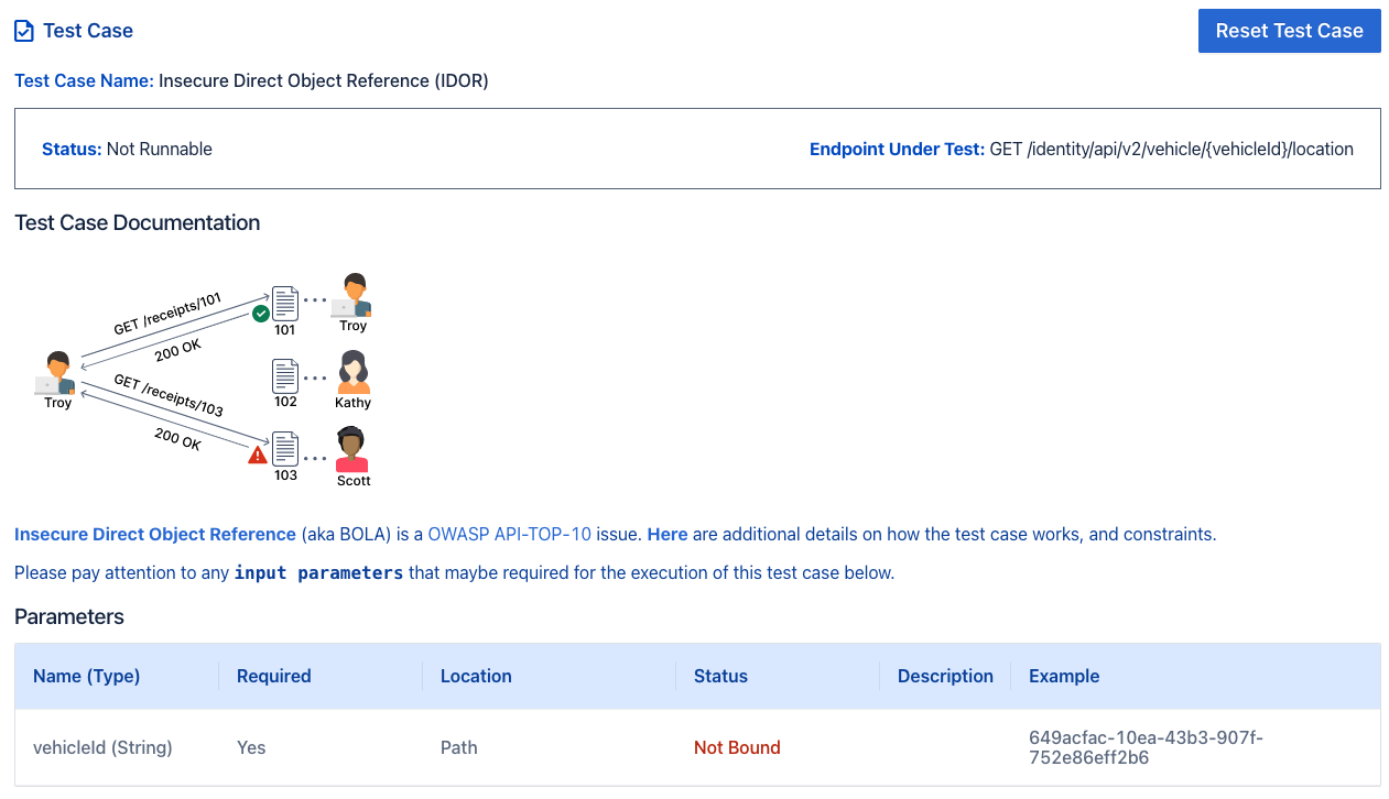 Above is an example of a test case for the endpoint GET /identity/api/v2/vehicle/{vehicleId}/location.